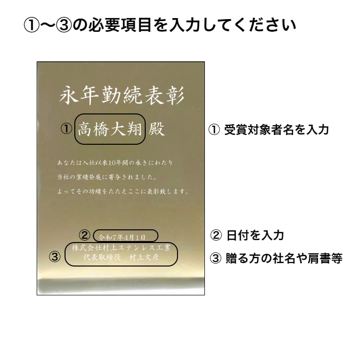 永年勤続表彰用盾